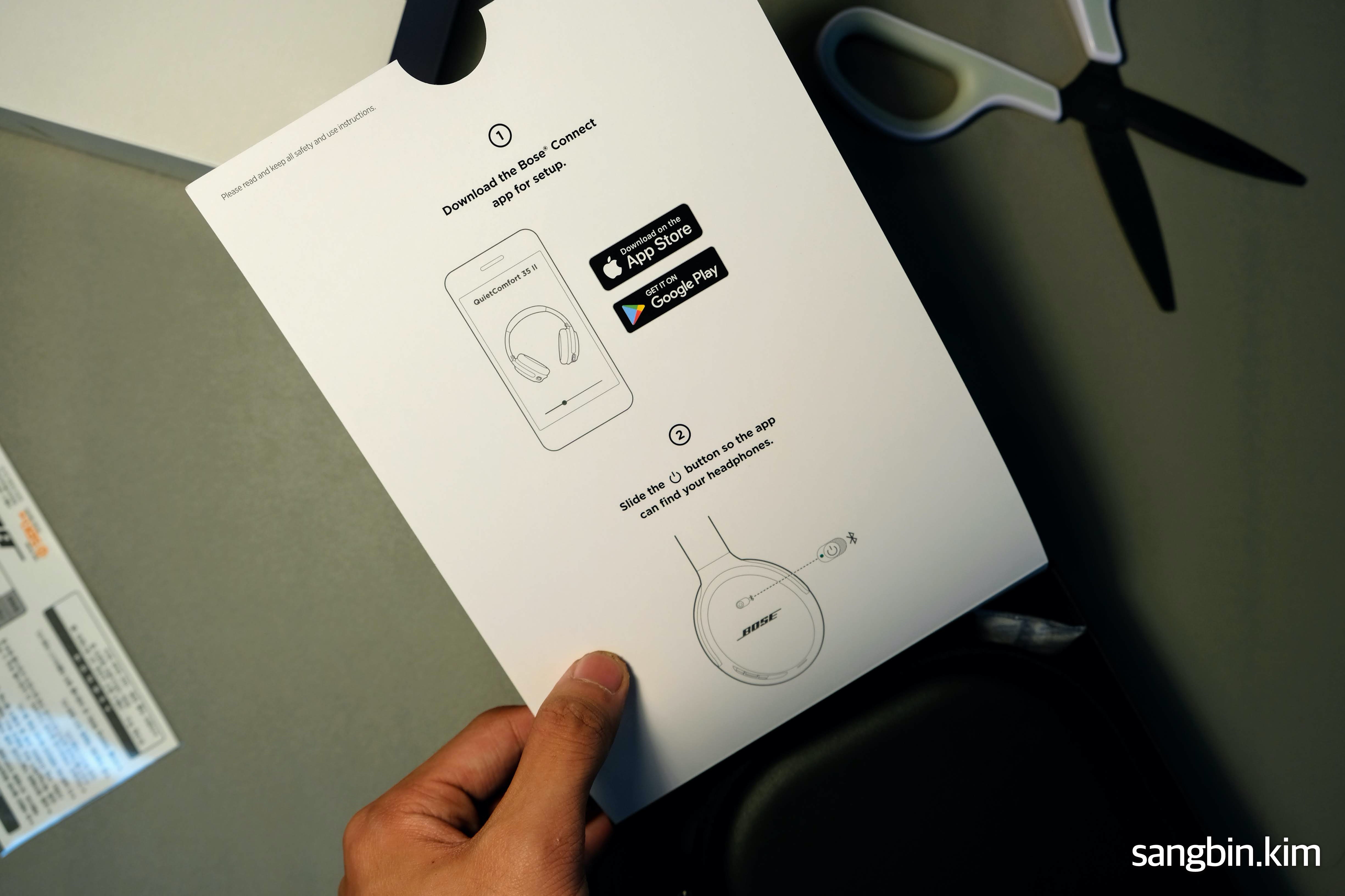 보스 커넥트 어플을 이용해서 블루투스 페어링 설정이나 노이즈캔슬링의 세기, 블루투스 기기 이름 설정 및 펌웨어 업데이트 등을 진행할 수 있다. 다른 보스 제품도 이 어플을 통해서 연결된다고 나와있었고, 어플 설치 이후 안내 가이드대로 스위치를 조작하여 전원을 넣었다.